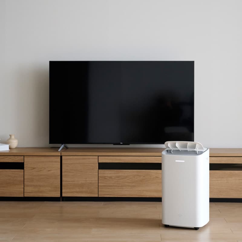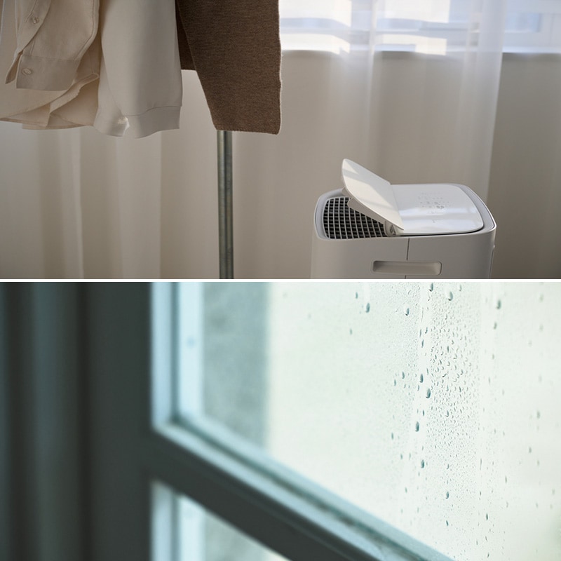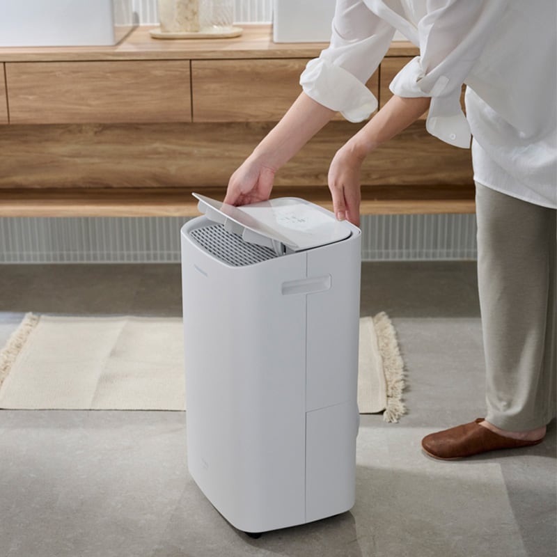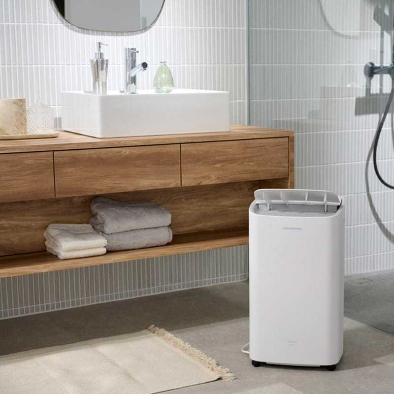 設置面積ほぼA4サイズのコンパクトさとパワフルな除湿力を兼ね備えた「コンプレッサー式 除湿機」。幅わずか29cmの省スペース設計で、限られた空間にもすっきり収まり、衣類乾燥にも活躍します。