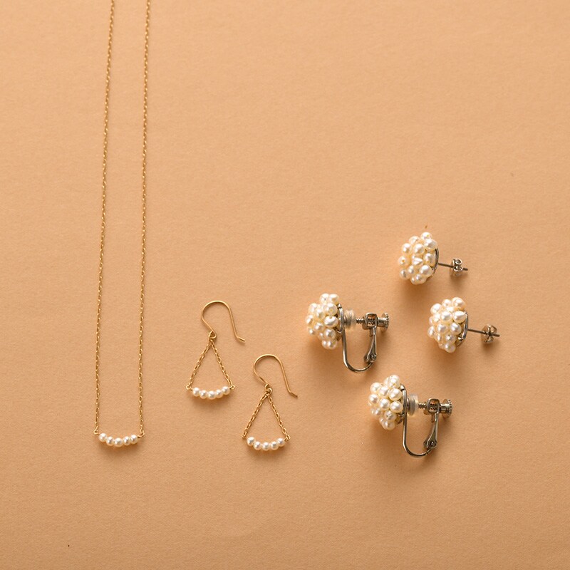 お揃いのピアスと合わせれば、さらに素敵に。統一感が増して、上品なコーディネートの完成です。普段使いはもちろん、お仕事でも、かわいさをプラスしたいときに重宝します。