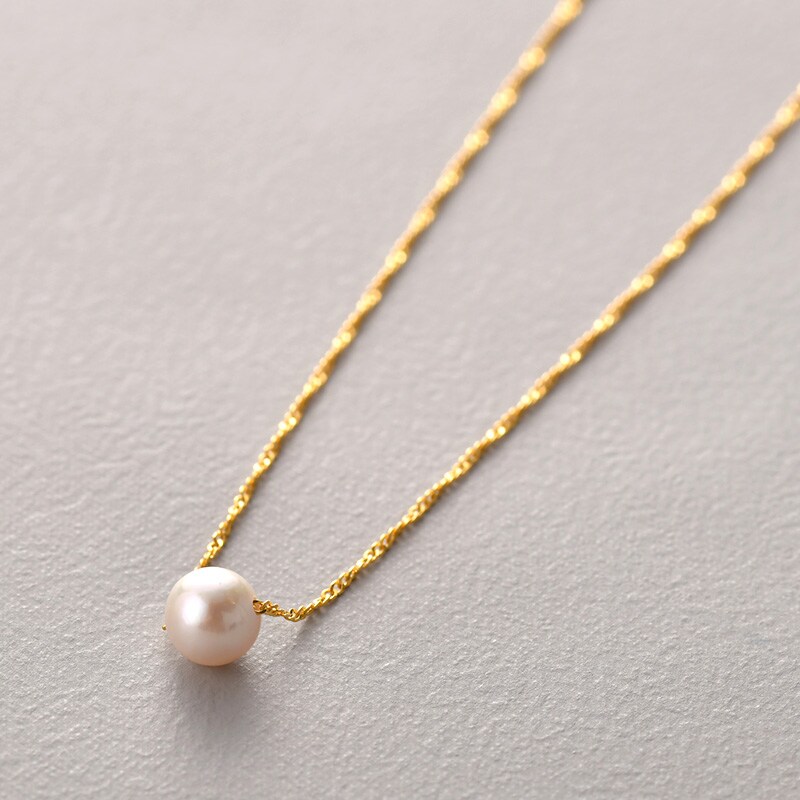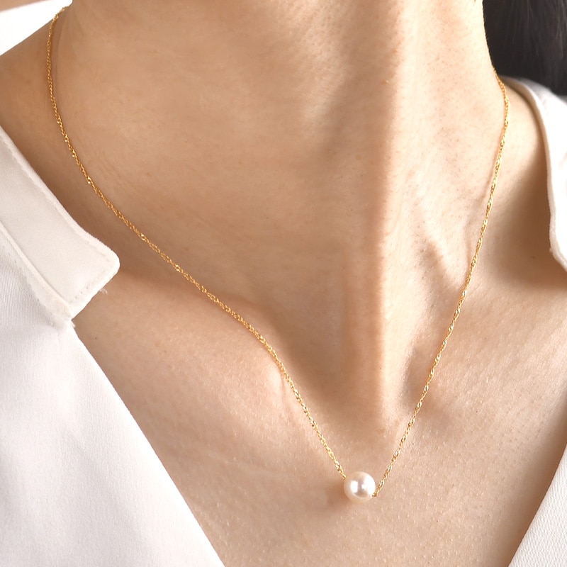 とてもシンプルなデザインのPoint(ポイント)シリーズから、セミラウンドの淡水パールを一粒あしらったネックレスです。全長45cmサイズでハイネックやタートルネックスタイルが多い方におすすめ。パール質感や照りなどがとても美しいパールで作られた、ひとつは持っていたいアクセサリーです。