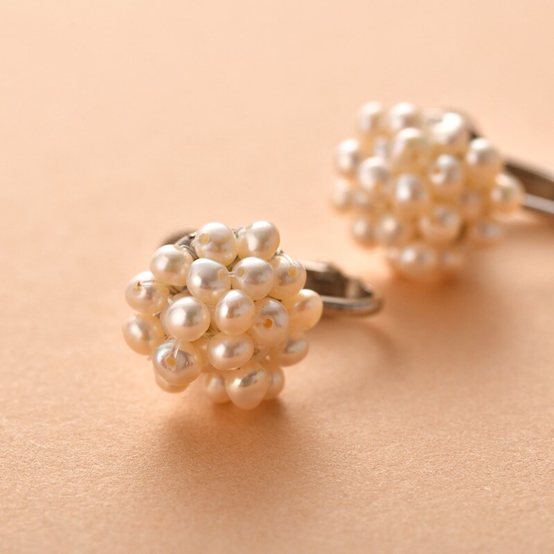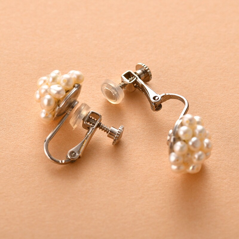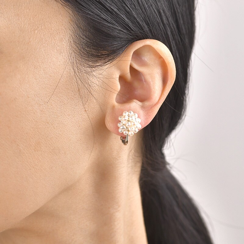 歪な小さな淡水パールがキュッと集まる様子がまるで泡のようなイヤリング。ふわっと可愛らしい印象が、女性らしさを引き立てるデザインで、程よい存在感のある華やかなアイテムです。