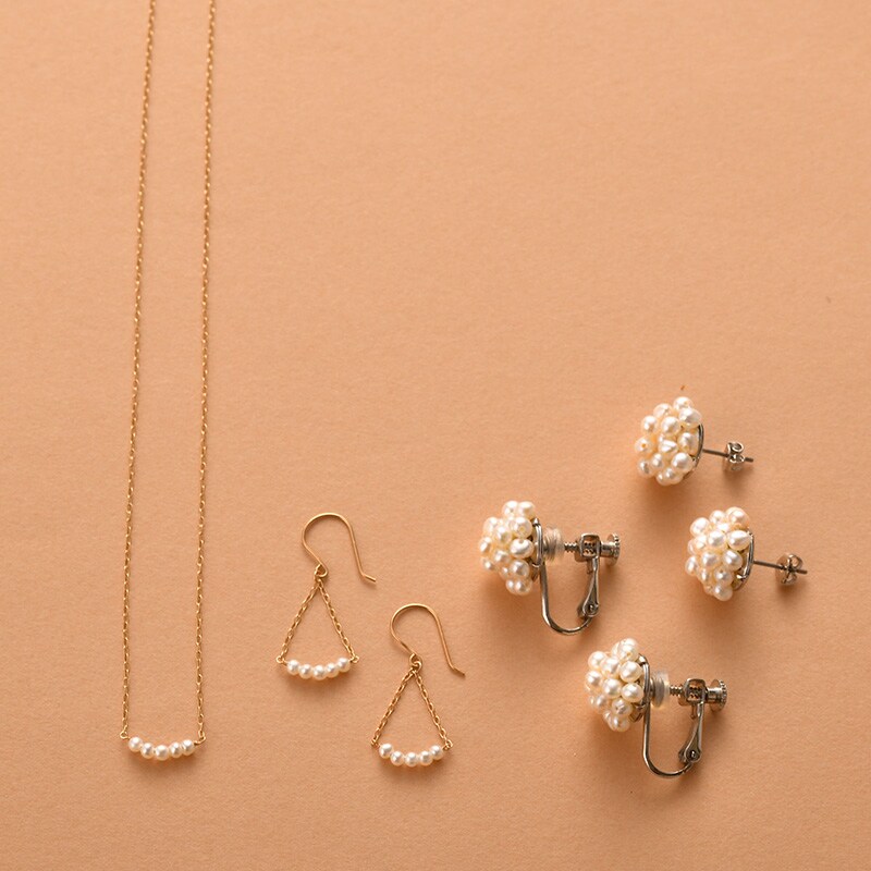 華やかさもあり、かわいらしくもあり、カジュアルにパールを楽しみたい方におすすめ。日常使いにはもちろん、ちょっとしたお出かけから結婚式まで、マルチにお使いいただけます。