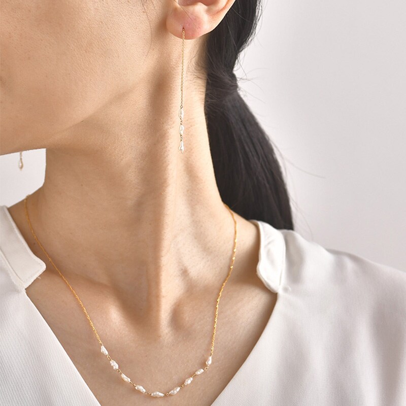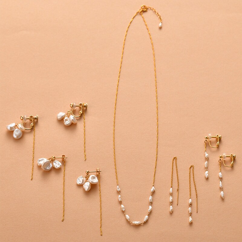 お揃いのネックレスと合わせれば、こなれ感を演出します。金具にはK14GFを使用しているので、お肌に優しく、長くご愛用いただけます。