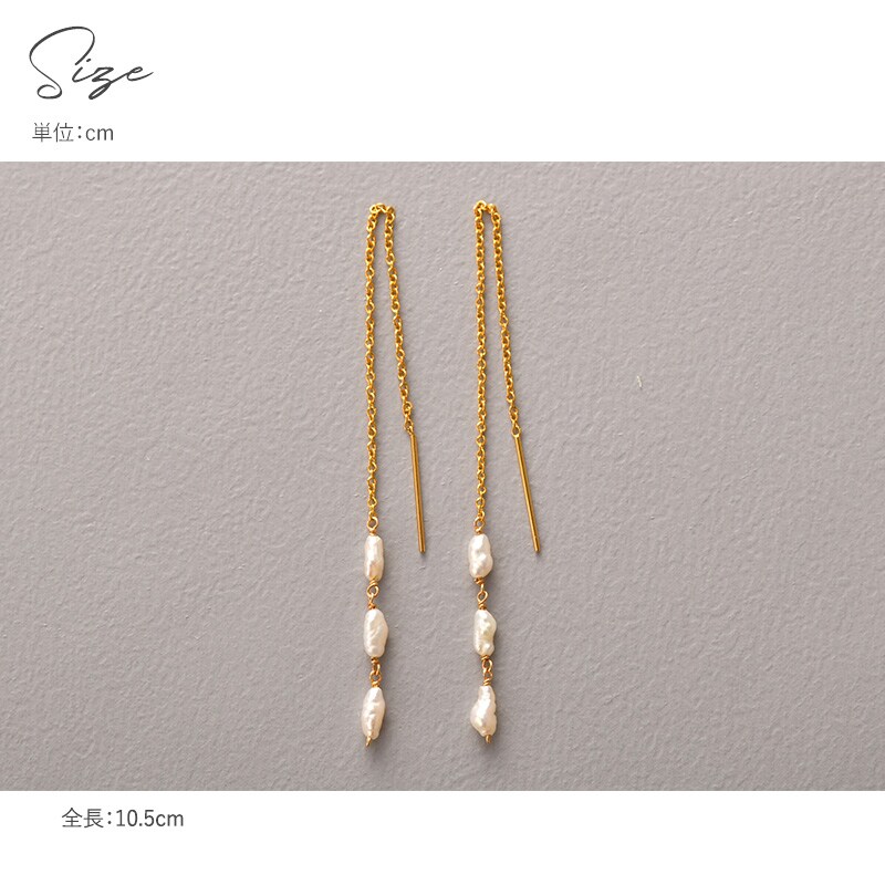 チェーンの部分は約7cm。ピアスホールにチェーンが通っている際は簡単に抜け落ちないので、お好みの長さで調節が可能。その日の気分で前後の長さを変えられるので、ファッションや髪型に合わせてお楽しみいただけます。