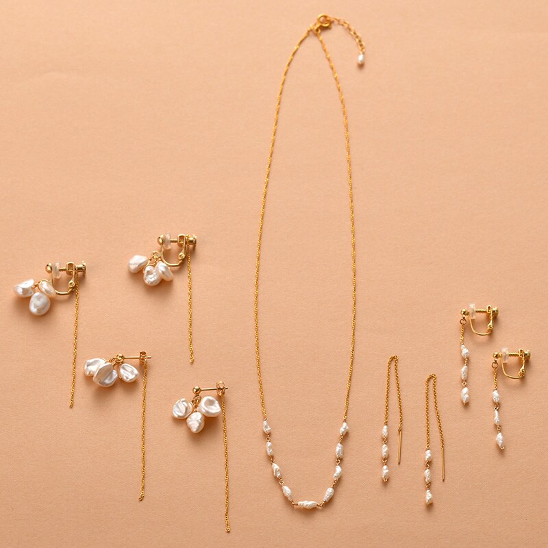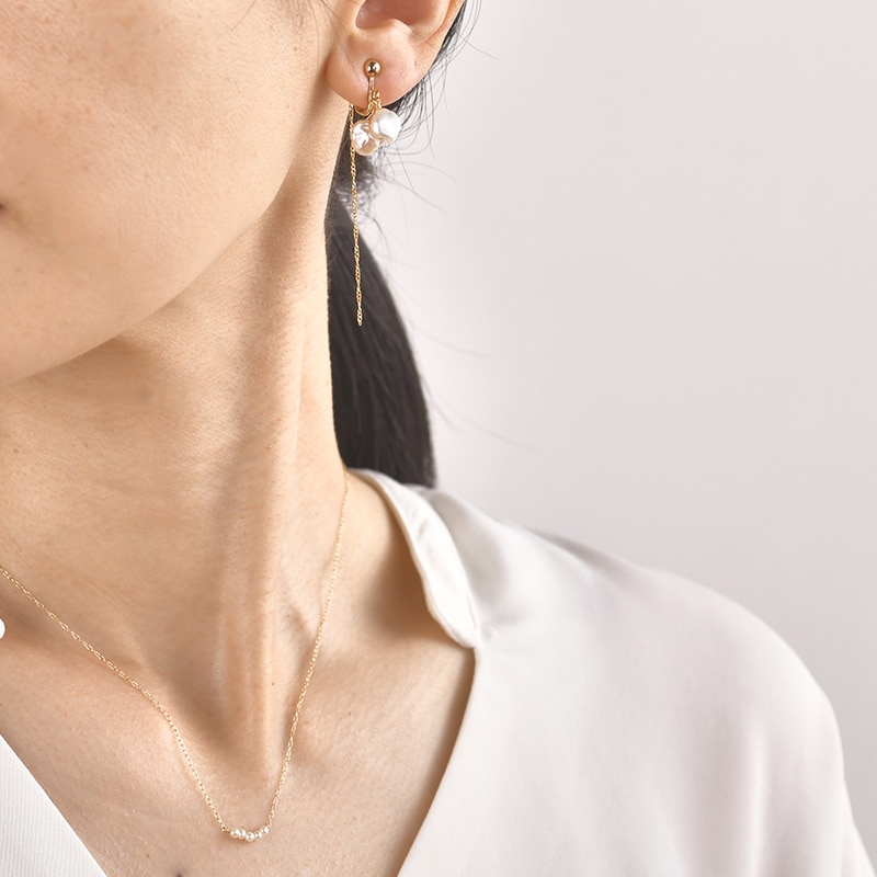 金具にはK14GFを使用しているので、お肌に優しく、長くご愛用いただけます。光沢のある淡水パールが印象的で日常使いにはもちろん、ちょっとしたお出かけから結婚式まで、マルチにお使いいただけます。