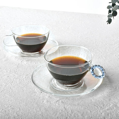 HARIO Lampwork Factory × natu&robe カップ&ソーサー サークル R 【別注】ブルー ハリオランプワークファクトリー カップ カップ&ソーサー おしゃれ ガラス製 耐熱 ギフト 映え 別注カラー 別注品 アクセサリー