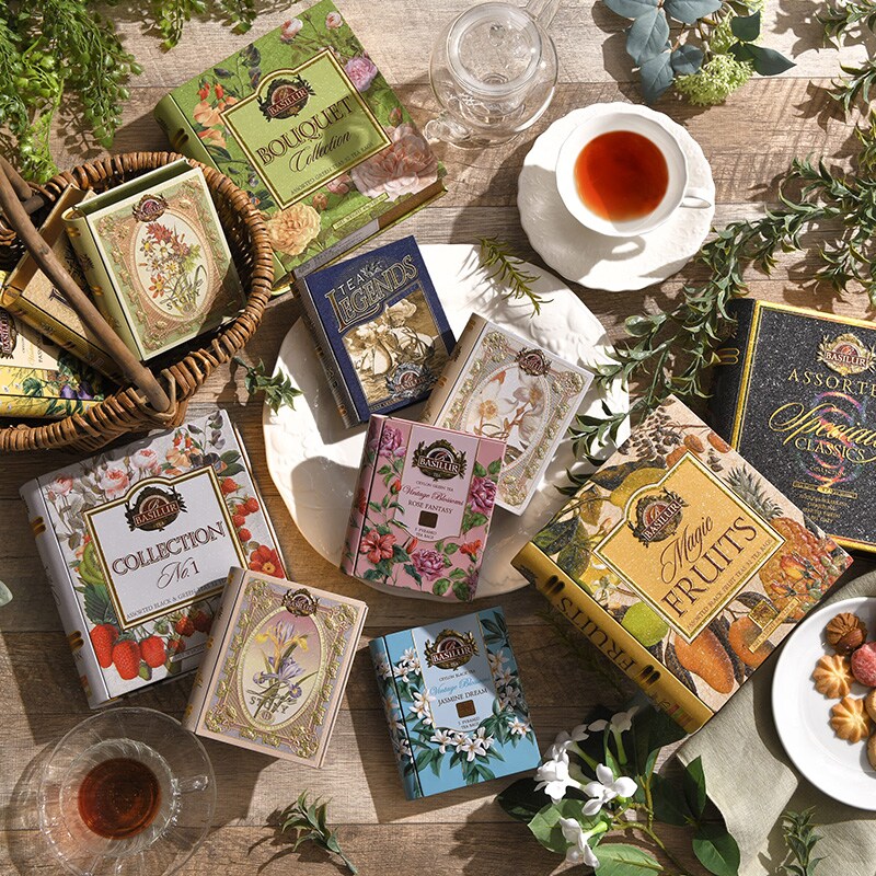 鮮度や茶葉へのこだわりはもちろん、パッケージデザインにも徹底的にこだわっているバシラーティー。パッケージこそ、洗練された茶葉をお届けするに相応しいデザインが求められると考えており、ヨーロッパ専属デザイナーの演出する、個性溢れるユニークで気品漂うデザインは、皆さまにいつもとは少し違ったティータイムをご提案します。
