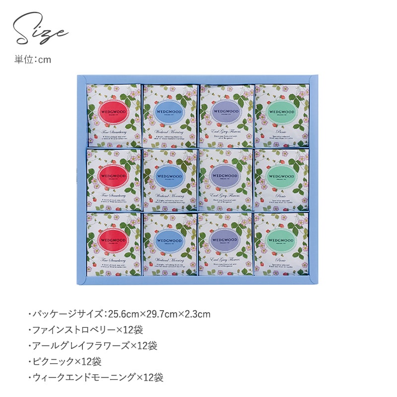内容量:ファイン ストロベリー×12袋、アール グレイ フラワーズ×12袋、ピクニック×12袋、ウィークエンド モーニング×12袋