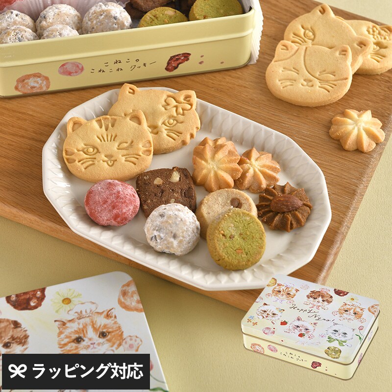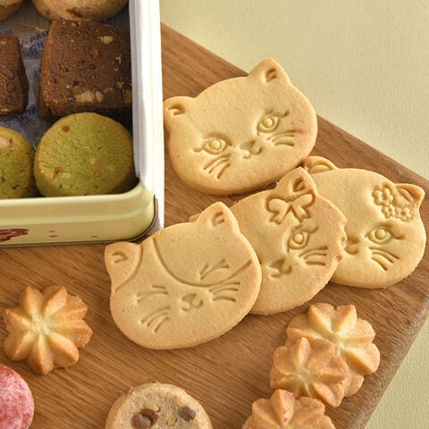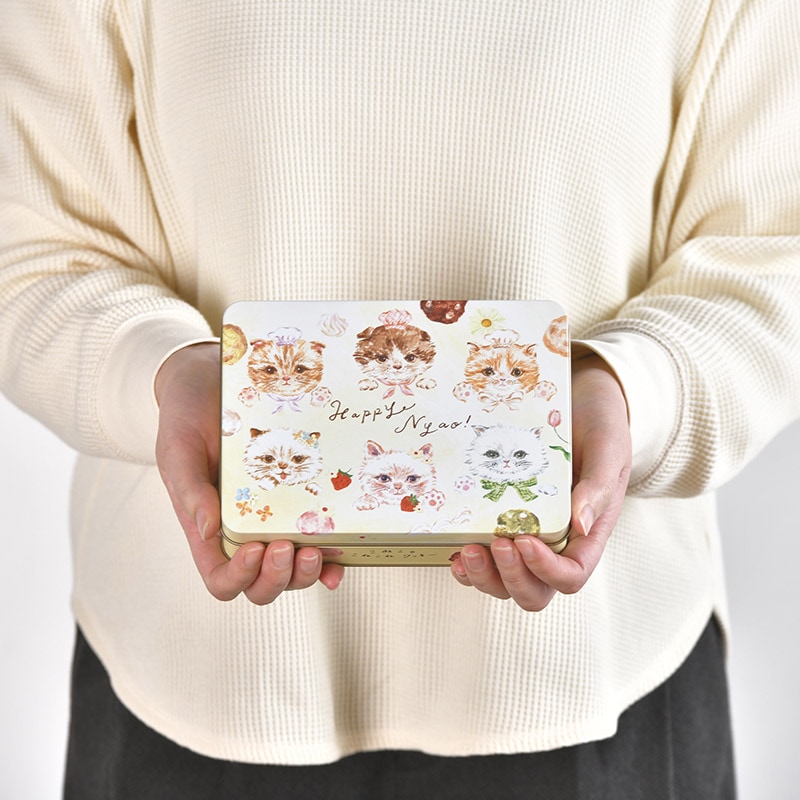 サクほろ食感のクッキーを詰め合わせたギフト缶。バラエティ豊かな食感、フレーバーをお楽しみいただけます。高級感もありシーンを選ばずご利用いただけ、猫を愛する人へのギフトには最適です。