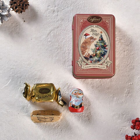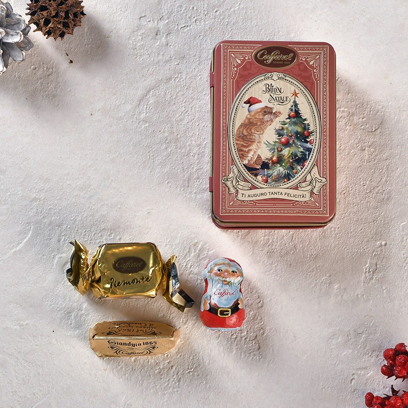 Caffarel カファレル クリスマス小缶 5000881101 カファレル チョコレート 缶 クリスマス 2025 おしゃれ かわいい ギフト プレゼント イタリア 贅沢チョコ 限定 詰め合わせ ご褒美スイーツ