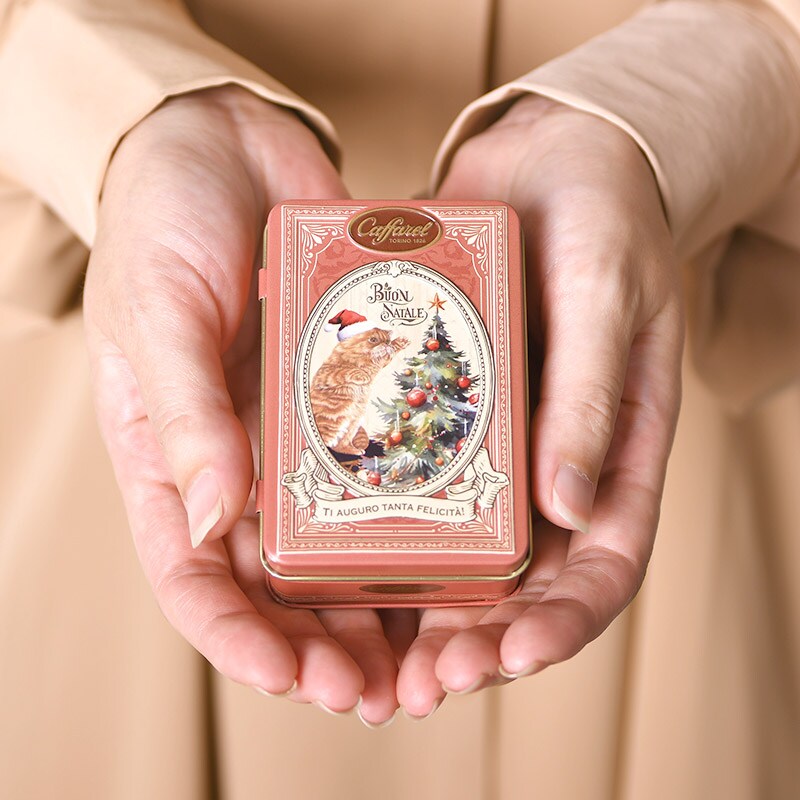 毎年人気のカファレルの限定クリスマス缶。2025年は、カファレルの代名詞であるジャンドゥーヤの発明から160周年を迎えた記念すべき節目として、カファレルならではの世界観に「原点回帰」の思いを込めたデザインにしました。イタリアのアンティークな雰囲気を大切にし、ノスタルジックで温もりのある仕上がりになっています。