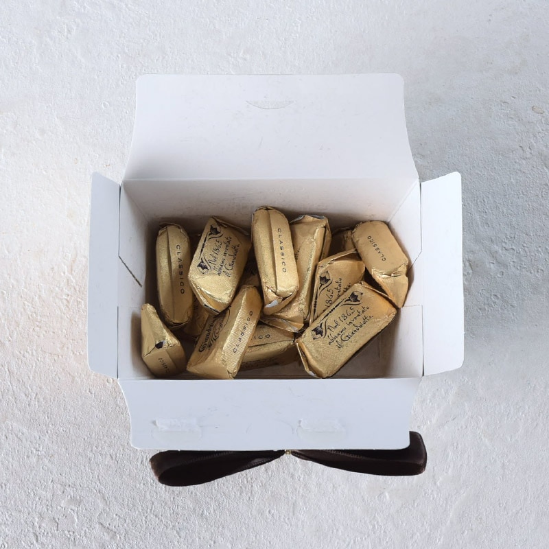 イタリアらしいクラシックなデザインのボックスは、バレンタインなど男性向けのギフトにもぴったり。しっかりお礼を伝えたい時のお返しや、がんばった自分へのご褒美など、プチ贅沢感が欲しい時にもおすすめです。