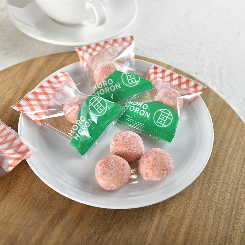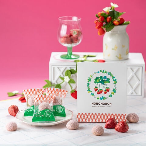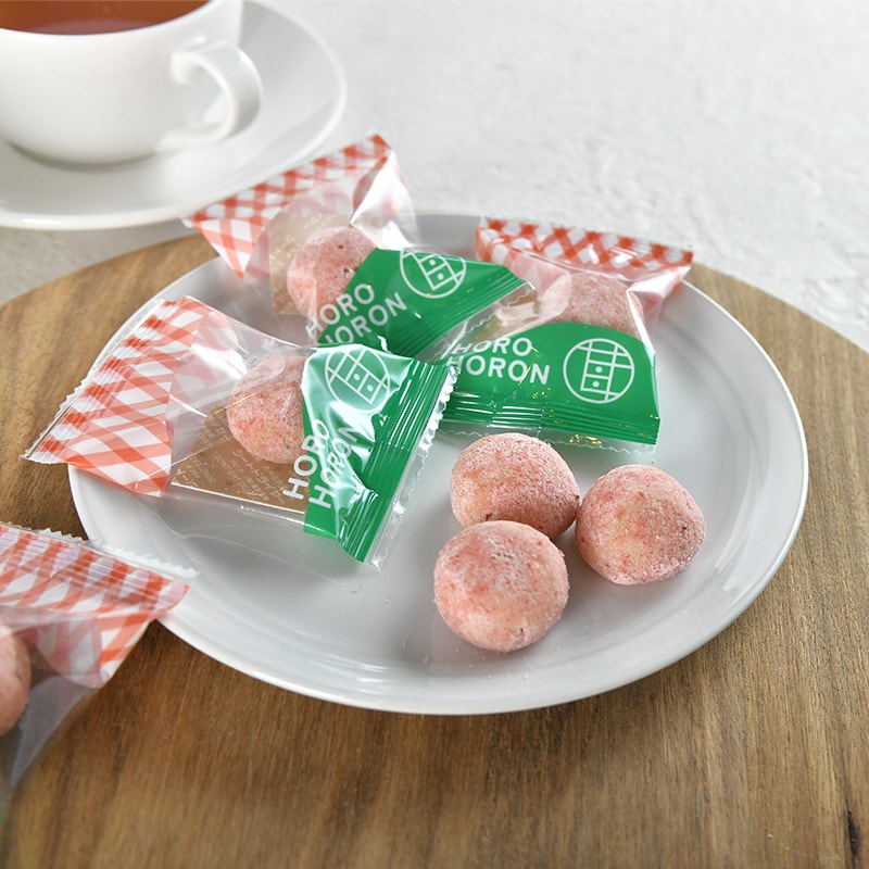 スペインの伝統菓子「ポルボロン」から着想を得た「HOROHORON」。口に入れた瞬間にほろりと崩れる、やさしい食感が特徴のお菓子です。使用しているのは、栃木県が誇る新品種いちご「とちあいか」。 その上品な甘みと爽やかな酸味、華やかに広がる香りが、ひと口で心を満たしてくれます。