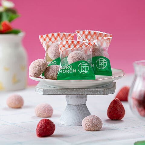 スペインの伝統菓子「ポルボロン」から着想を得た「HOROHORON」。口に入れた瞬間にほろりと崩れる、やさしい食感が特徴のお菓子です。使用しているのは、栃木県が誇る新品種いちご「とちあいか」。 その上品な甘みと爽やかな酸味、華やかに広がる香りが、ひと口で心を満たしてくれます。