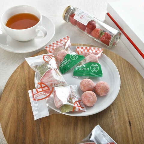 上品な甘酸っぱさと、大粒の満足感。栃木県産とちおとめをサクッと軽やかなフリーズドライに。ホワイトチョコで包み込み、かわいらしさと美味しさを両立した、栃木土産の新定番です。