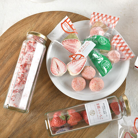 とちおとめを贅沢に使った見た目も鮮やかなグラニュー糖。紅茶にひとさじ加えるだけで甘酸っぱいいちごの香りが広がります。シュガートーストや手作りスイーツのアクセントにもおすすめ。
