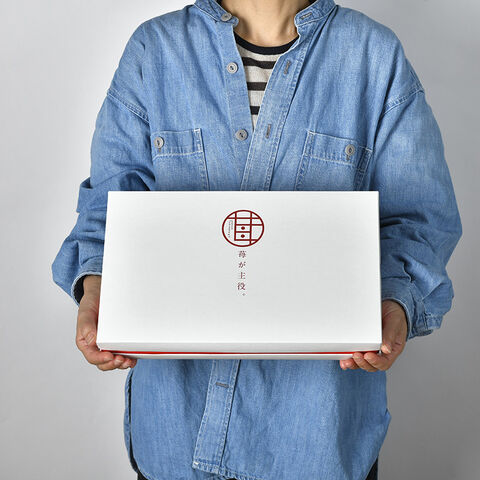 和の雰囲気がおしゃれなオリジナルボックスに入れてお届けします。縁起のよい紅白カラーでお祝いの贈り物などにぴったり。食べやすくてシェアがしやすい個包装なのも嬉しいポイントです。