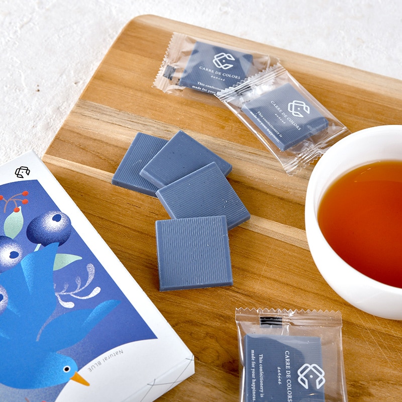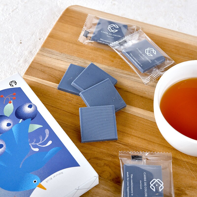 口どけのいい濃厚でありながらキレのあるミルク感の強いホワイトチョコレートを使用。アグリ生活が独自に開発した青いハーブのバタフライピーを使用し、植物由来で色付けしています。合成着色料を使わない安心のチョコレートです。