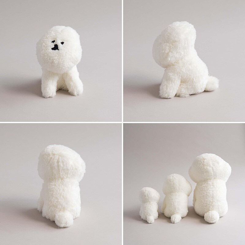 イラストレーター 塩川いづみさんが描いた「ビション・フリーゼ」がモチーフの、なんとも愛らしい子犬のぬいぐるみです。もこもことした純白の巻き毛からのぞく、つぶらな瞳や鼻がたまりません。