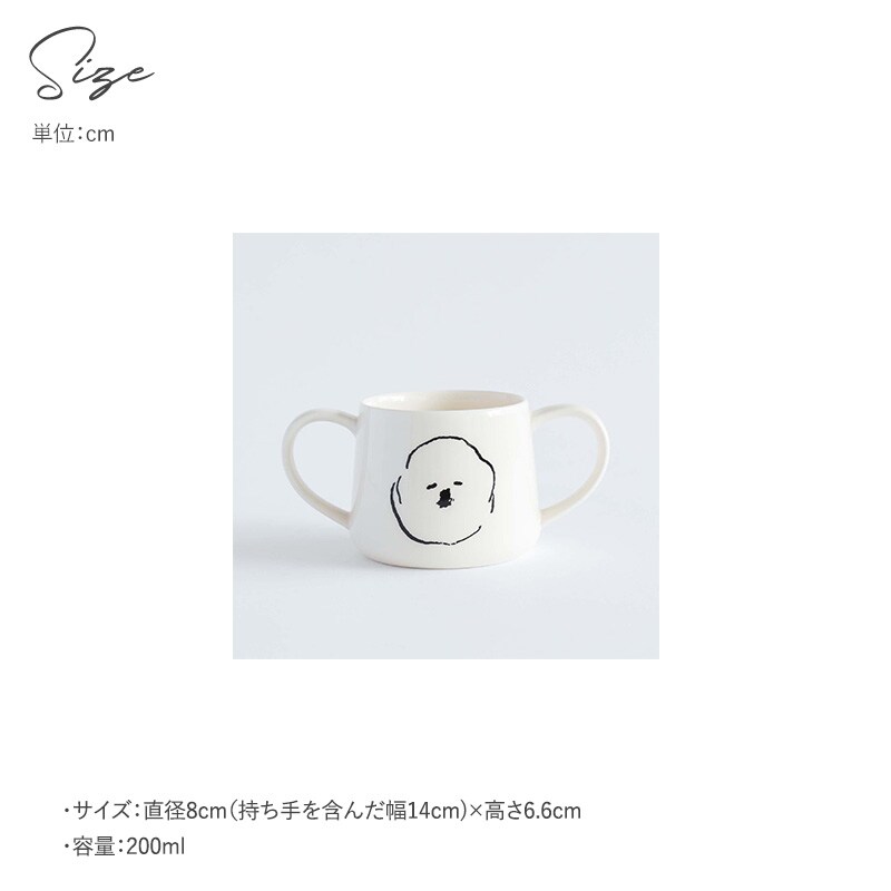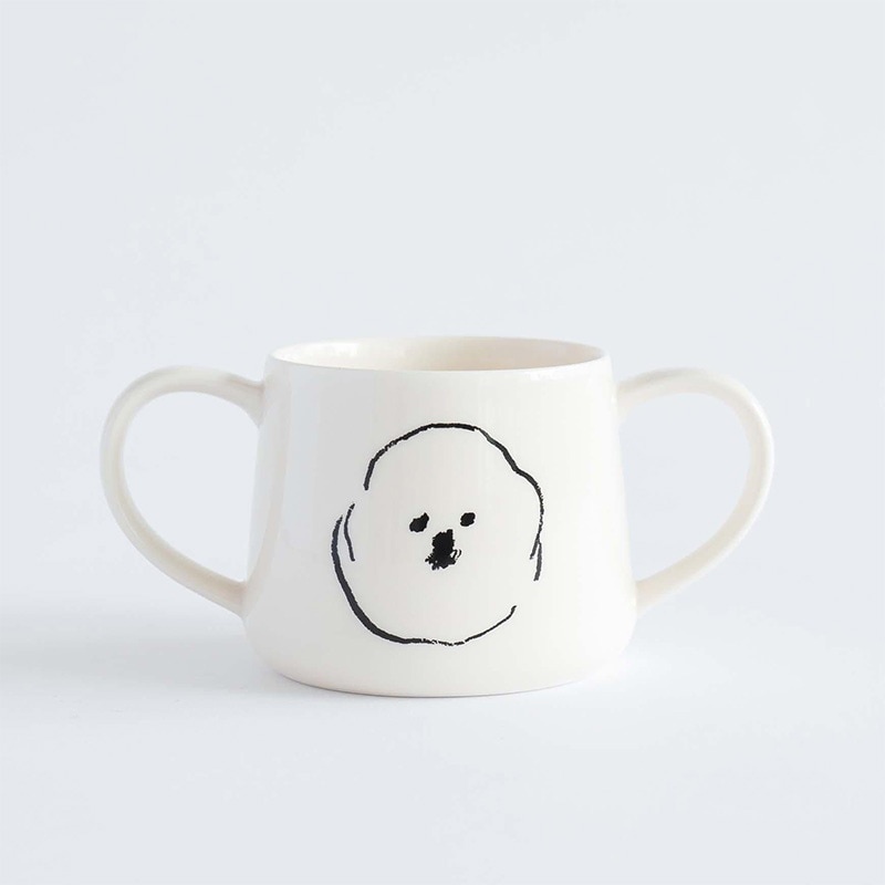 イラストレーター 塩川いづみさんの描いた「ビション・フリーゼ」がモチーフの人気のMAMBOシリーズに、左右にハンドルが付いたダブルハンドルタイプのマグカップが登場。