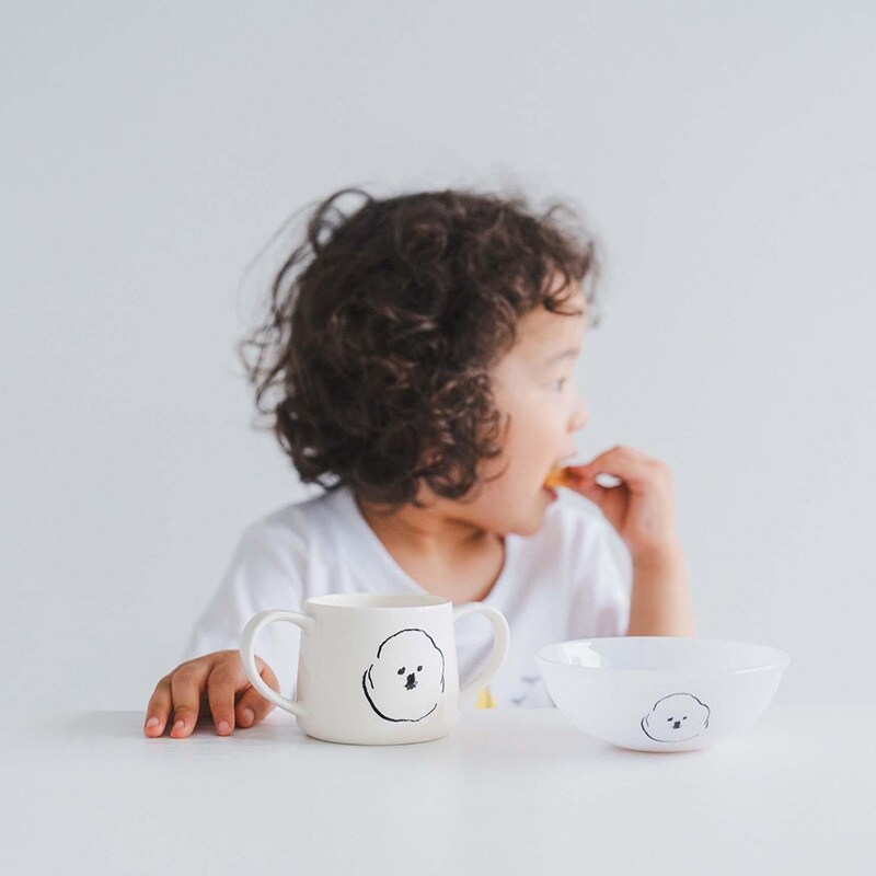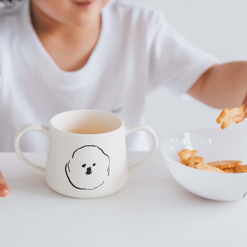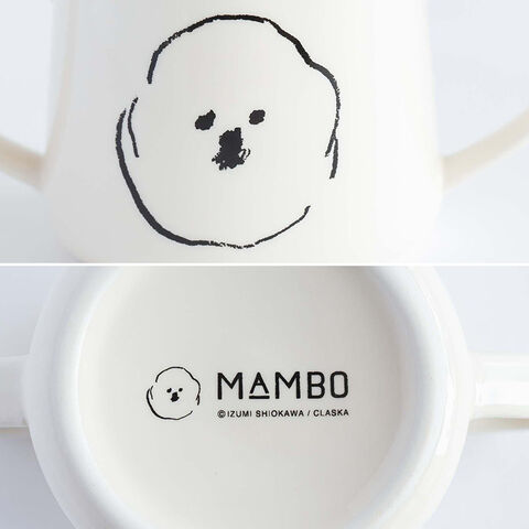 イラストレーター 塩川いづみさんの描いた「ビション・フリーゼ」がモチーフの人気のMAMBOシリーズに、左右にハンドルが付いたダブルハンドルタイプのマグカップが登場。微笑ましいMAMBOの顔と、目をつぶった、なんだか眠たそうなMAMBOの顔が描かれており、使うたびにその愛らしさに癒されそうです。
