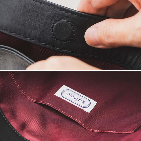 開閉部分は、洗練されたデザインかつ使いやすい、隠しマグネット仕様。内側にはシックで大人っぽいボルドーカラーを採用しました。使いやすい内ポケットがあり、中身を整理しながらお使いいただけます。 kalsacのロゴも小さなアクセントになっています。