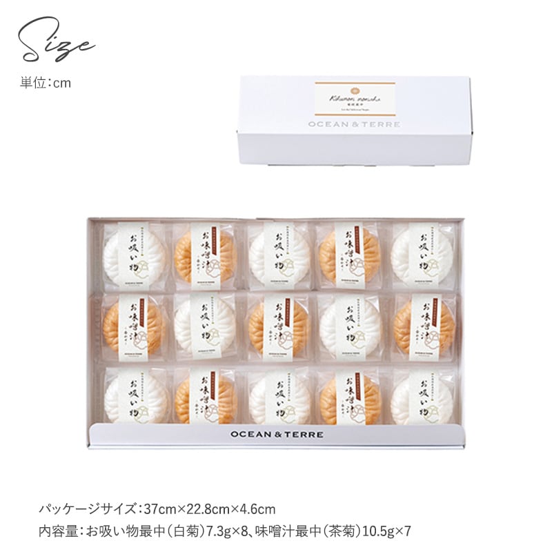 内容量:お吸い物最中(白菊)7.3g×8、味噌汁最中(茶菊)10.5g×7