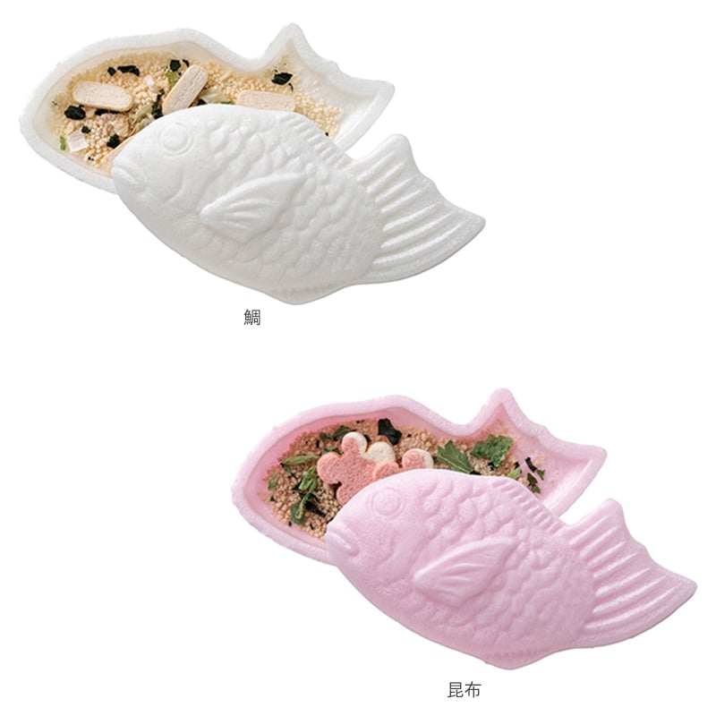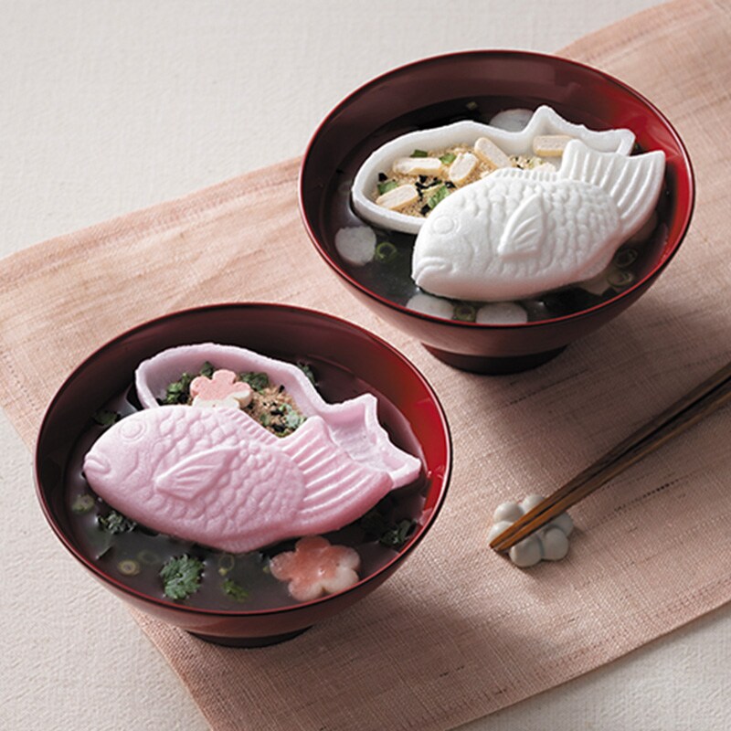 2つの味が楽しめる、紅白鯛のお吸い物最中セット。鯛は長寿の象徴と言われ、縁起が良いとされています。お椀に最中を丸ごと入れて、熱湯を注ぐだけ。手軽で見栄えも良く、お子さまからご年配の方まで、気軽にお楽しみいただけます。