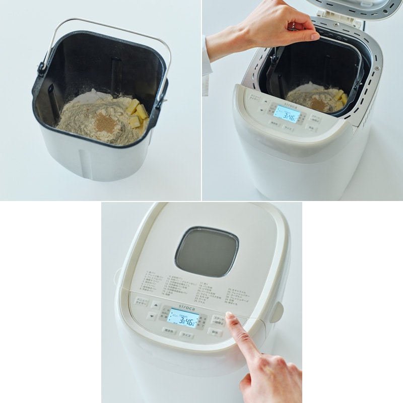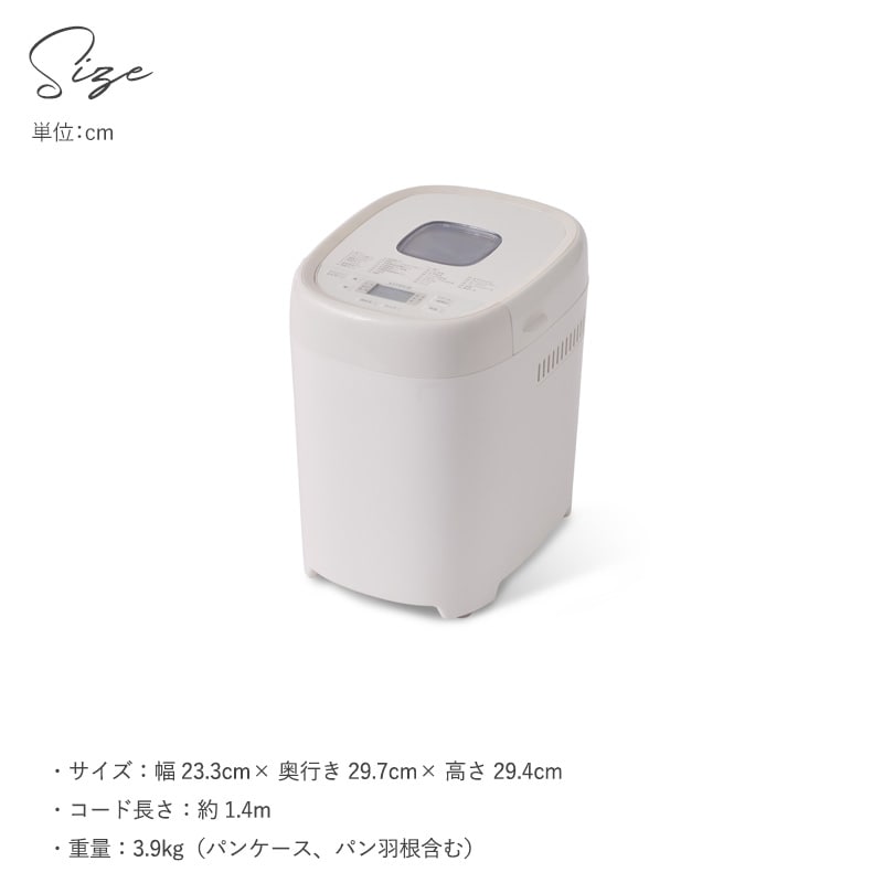 ・付属品:計量カップ、計量スプーン、パンケース、パン羽根、羽根取り棒、ヨーグルト専用容器、レシピブック