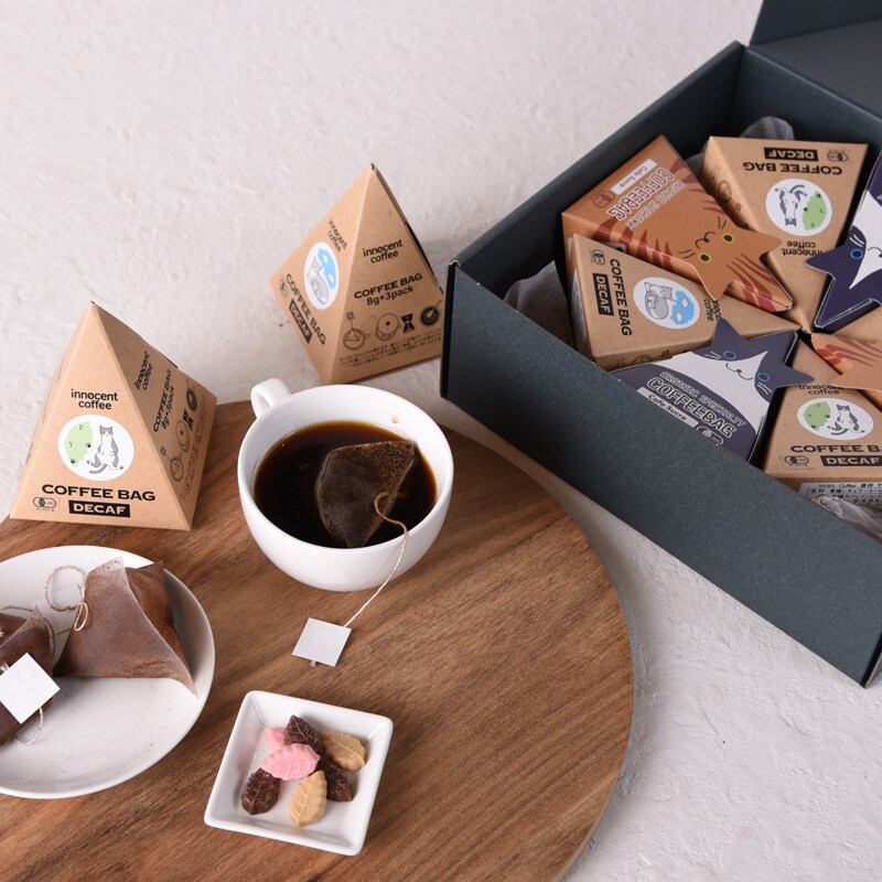 innocent coffee イノセントコーヒー 猫テトラ8個ギフト コーヒー 珈琲 ギフト ギフトセット デカフェ おしゃれ かわいい 水出し カフェオレ オフィス アウトドア テトラ型 犬 猫 イノセントコーヒーのレビュー