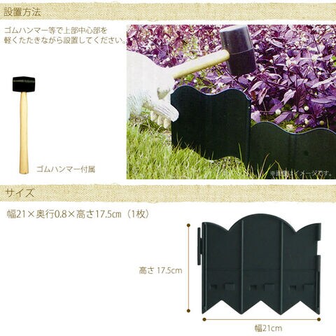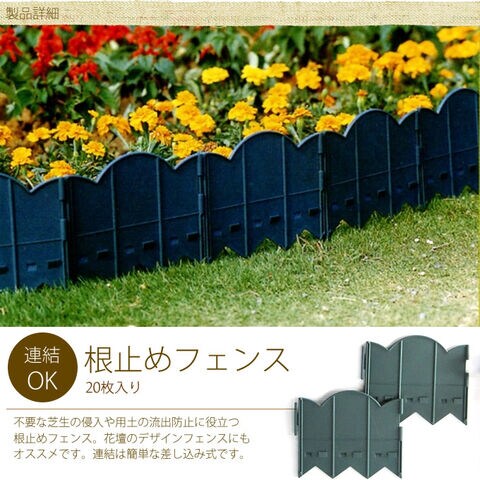 備考:不要な芝生の侵入や用土の流出防止に役立つ根止めフェンス。花壇のデザインフェンスにもオススメです。連結は簡単な差し込み式になります。