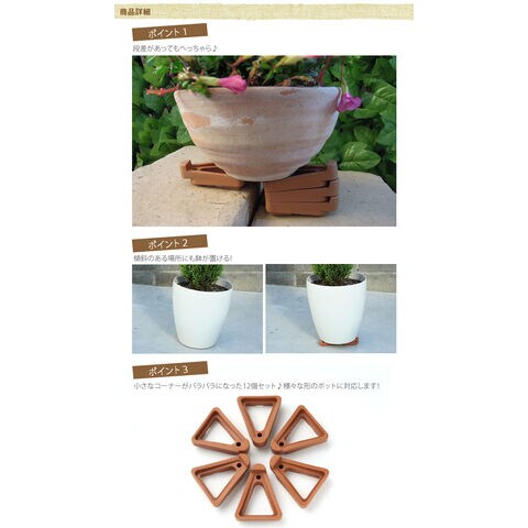 備考:傾斜や段差のある場所にも鉢が置ける!様々なポットに対応します。また鉢を底上げすることにより、水はけを良くして根腐れ対策にもなります!