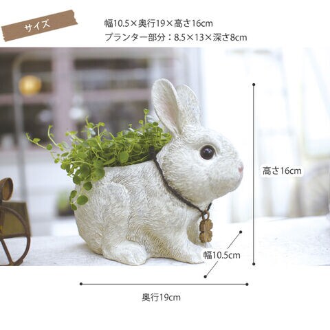 備考:キュートなうさぎのプランター♪グリーンを植えて飾れば、まるで物語の1ページかのようにお庭を華やかに彩ります。SとLの2サイズを並べて飾るのがオススメです。水抜き穴あり。