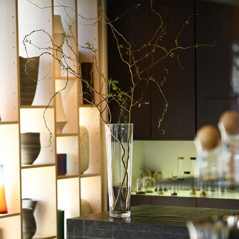 気泡が少なく、透明感と厚みのある品質の良いヨーロッパガラスの花器。
