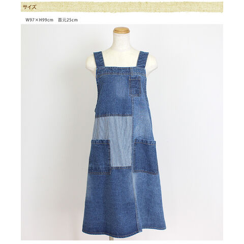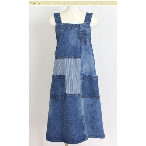 備考:色合いの違うウォッシュデニムとヒッコリー生地をパチワークで仕上げた、とってもオシャレなガーデンエプロン♪
