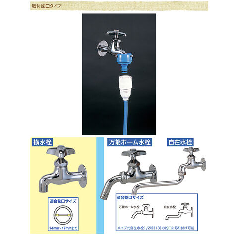 取付けられる蛇口は横水栓(蛇口径14-18mm)、万能ホーム水栓(蛇口径14-18mm)です。