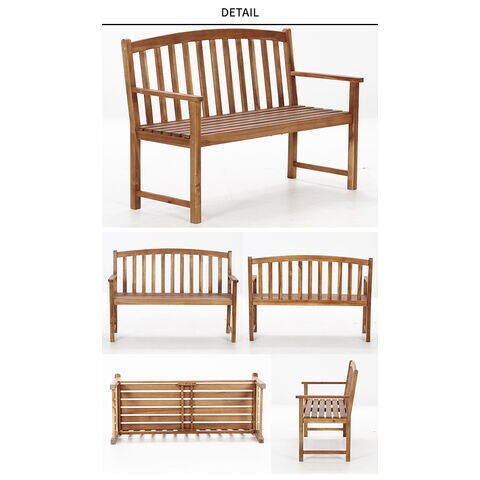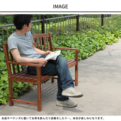 備考:耐久性のある天然木のアカシア材で作られたシンプルデザインのガーデンベンチ。オイルステイン加工を施してあるので水にも丈夫です。天然木の美しさと木のぬくもりを味わえる、座り心地の良いベンチです。テラスやお庭など憩いのスペースでお使いください。