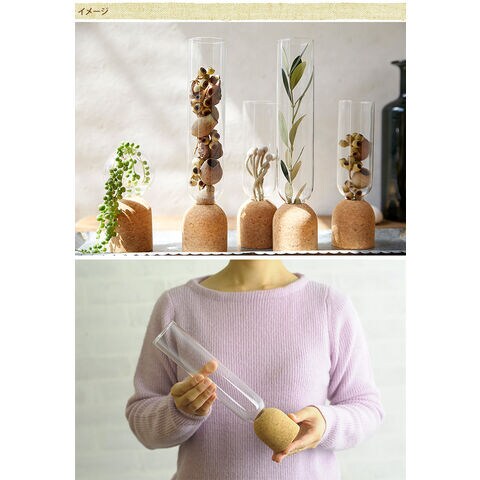 ガラス花瓶 ガラスとコルクのおしゃれな融合 大  フラワーベース 和モダン プランター おしゃれ 玄関 カフェ インテリア やさしい かわいい クリアガラス