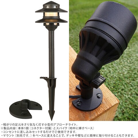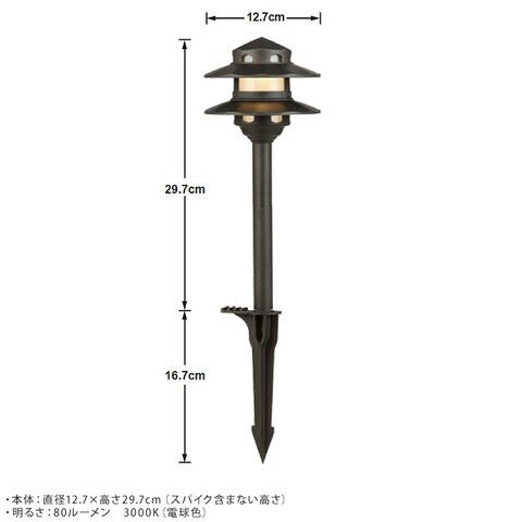 消費電力:3W 明るさ:80ルーメン 3000K(電球色) LED交換不可 スパイク付属 防雨型 別売りマウント使用可
