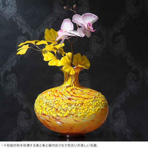 花瓶 ガラス 秋の訪れ色めく十和田湖 紅葉 大 花器 大きい おしゃれ 日本製 大きな フラワーベース
