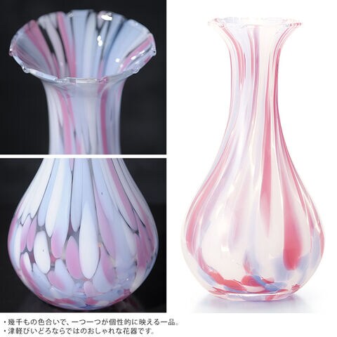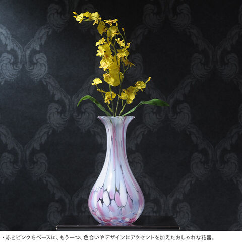 この花瓶に挿せばどんなお花もルンルンと幸せな気分で一杯になりそうです。 どんなお花を挿そうか毎日が楽しくなります。 津軽びいどろならではのおしゃれな花器。