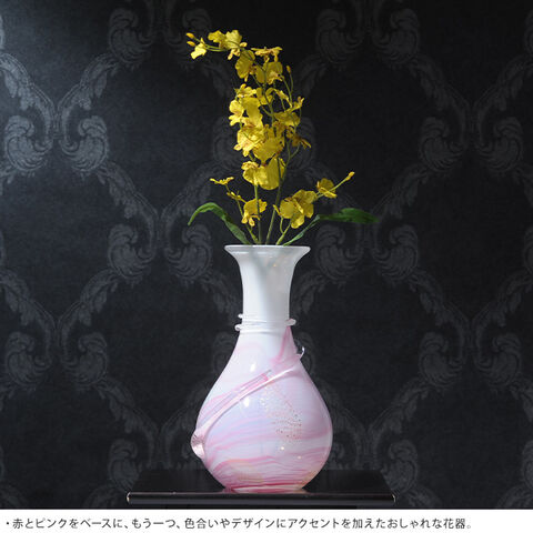 この花瓶に挿せばどんなお花もルンルンと幸せな気分で一杯になりそうです。 どんなお花を挿そうか毎日が楽しくなります。 津軽びいどろならではのおしゃれな花器。