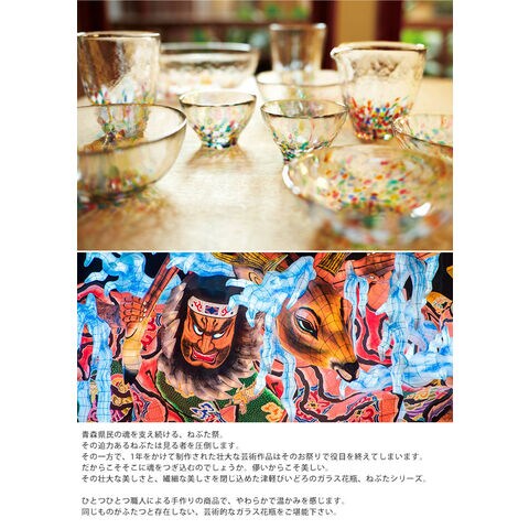 その壮大な美しさと、繊細な美しさを閉じ込めた津軽びいどろのガラス花瓶、ねぶたシリーズ。