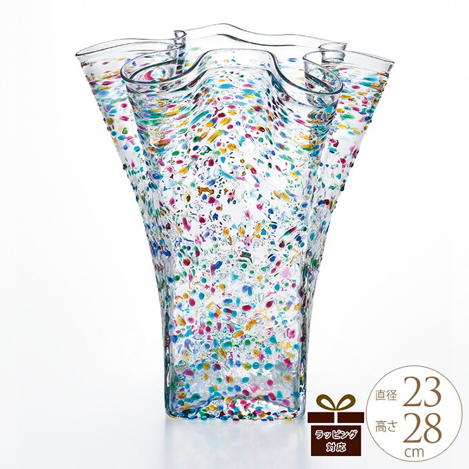 花瓶 ガラス 日本製 津軽 ねぶたの空 フリル 高さ28cm ガラス花瓶 国産 花器 おしゃれ 津軽びいどろ 生け花