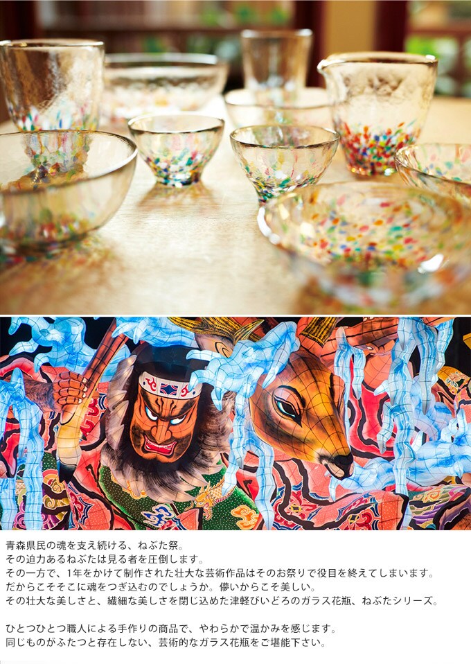 その壮大な美しさと、繊細な美しさを閉じ込めた津軽びいどろのガラス花瓶、ねぶたシリーズ。