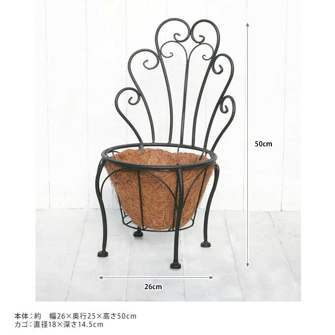 アイアン ガーデニング チェア バスケット S ココヤシマット付き