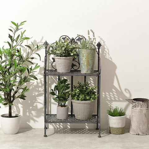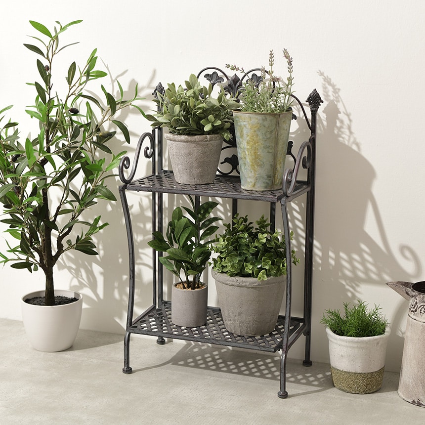 花台 アンティーク 屋外 おしゃれ アイアン フラワースタンド 2段 折りたたみ