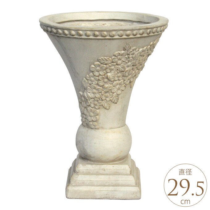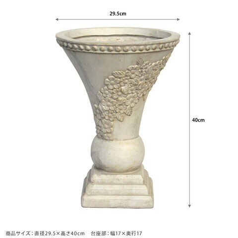 備考:古代ローマを思わせる、風格のあるプランター。一見、重たい石で作られてるように見えますが、グラスファイバー製で軽いプランターです。素敵なお庭づくりの演出にぜひご利用ください。