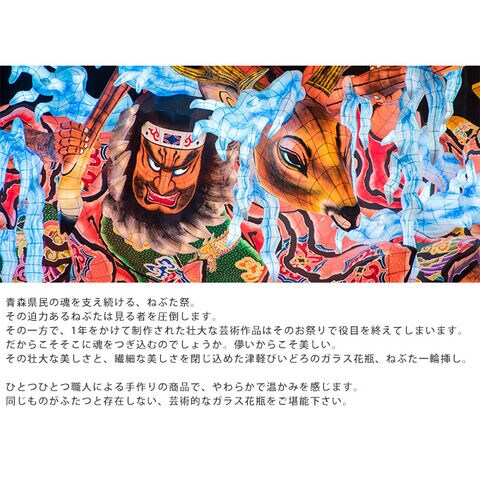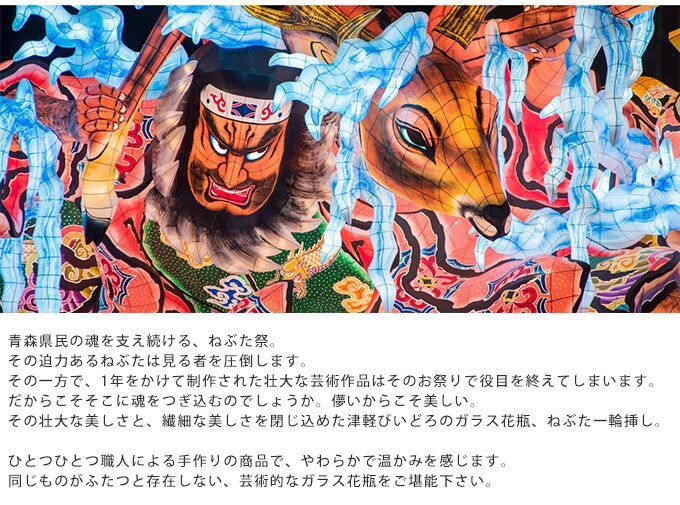 その壮大な美しさと、繊細な美しさを閉じ込めた津軽びいどろのガラス花瓶、ねぶた一輪挿し。
