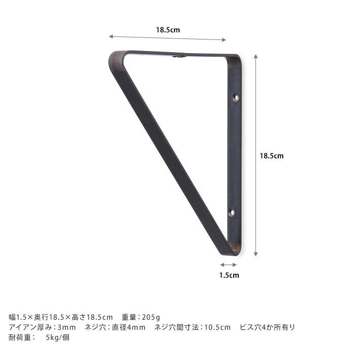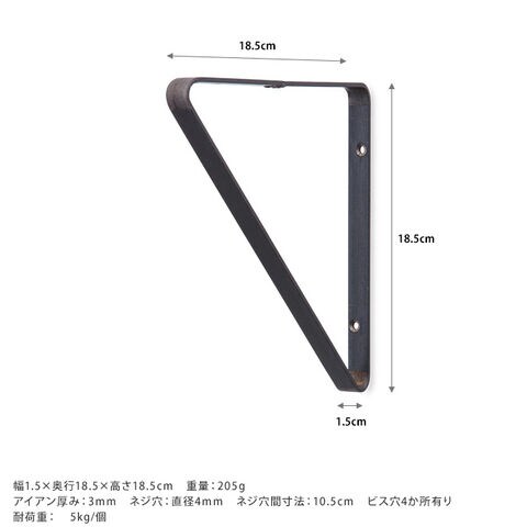 サイズ/重さ:幅1.5×奥行18.5×高さ18.5cm 重量:205g アイアン厚み:3mm ネジ穴:直径4mm ネジ穴間寸法:10.5cm ビス穴4か所有り