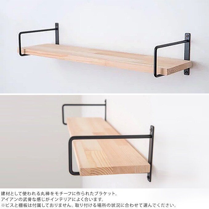 備考:建材として使われる丸棒をモチーフに作られたブラケット。アイアンの武骨な感じがインテリアによく合います。